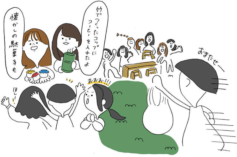 「もものば」とは、私「桃子」が開く人の集う場です。ここでは、マイキャラクター「ももこ」を使用した似顔絵を「みんなももこになる似顔絵屋」と題し屋台で開きました。また、みんなが各自の力を持ち寄ってパーティーを開く場を「みなのば」としました。同じ志を持ち得意を共有する仲間との場は、今あるものの大切さを教えてくれます。社会人になる私にとって人が集う場の在り方を考えるきっかけになりました。