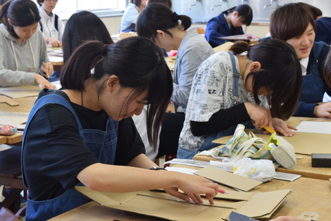 クラフトデザインⅠ陶芸の授業にて
