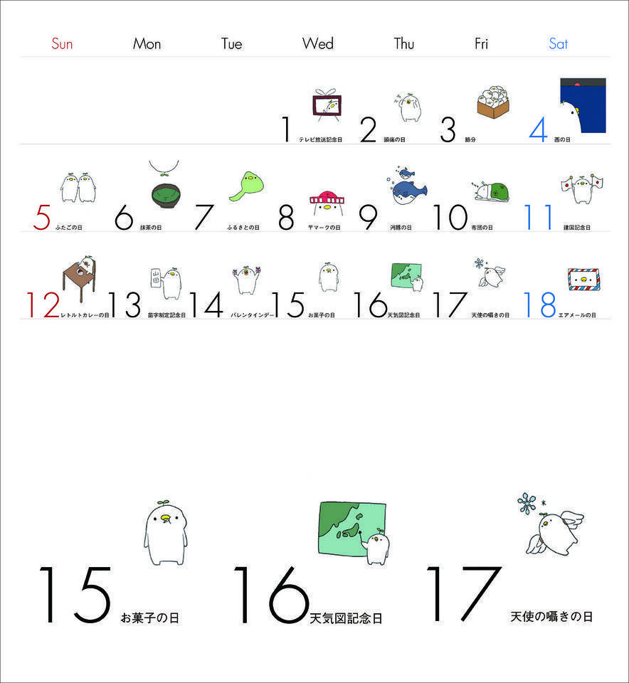 「MOCHIZO CALENDAR」 私たちに誕生日があるように365日には記念日がある。カレンダーを見た時に今日は何の日かが分かると面白いと思います。見ていて楽しさを感じられるようにオリジナルキャラクターを考えました。誰もが見た時に笑顔になるような優しく柔らかいイメージの餅。 ネーミングは「モチゾー」。カレンダー全体のガイド役として登場します。