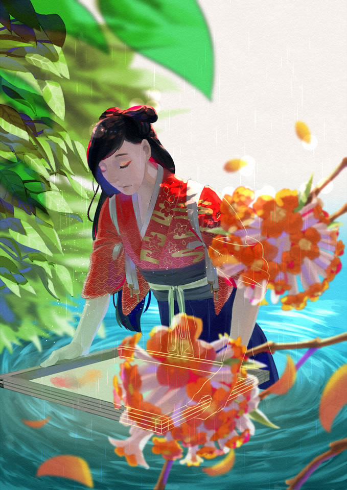 「福井十物語」 福井の逸話のビジュアル化 福井に昔から伝わる昔話をモチーフにビジュアル化して制作しました。某携帯会社のCMで昔の英雄達が活躍している姿を見て、福井にもそういった昔話はないものかと思い探し始めたのが最初でした。私の住んでいる福井県内にも興味深いお話がたくさんあり、ぜひ他の皆さんにも知ってもらいたいと思い、制作の主題にしました。 川上御前 八尾比丘尼 金魚にとりつかれた若者