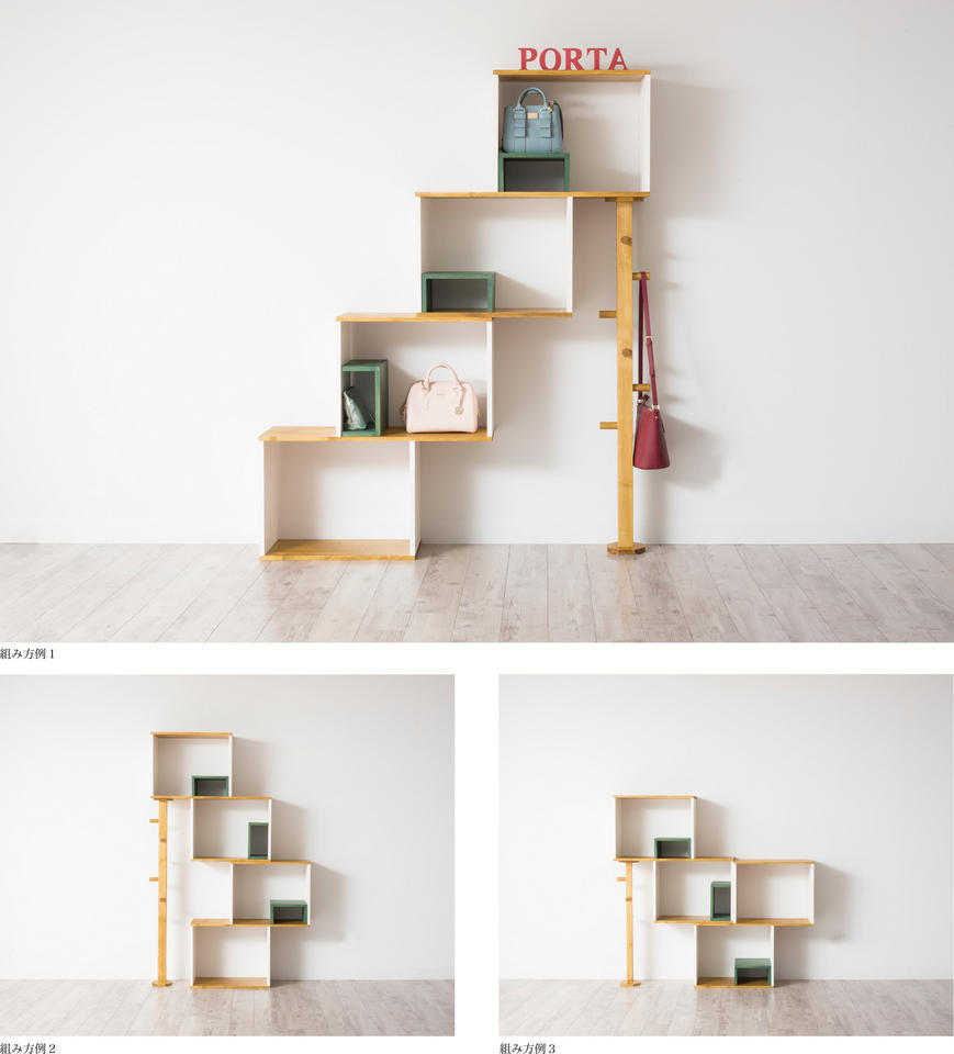 「ポルタ」 バッグを飾る棚 どこにどのバッグがあるのか、 素早く見分けることが出来て、インテリアとしても 綺麗にバッグを収納するための家具『ポルタ』。 私が欲しかったポールハンガーと 棚をデザインしました。