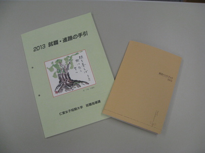 また、就職活動に必須の「2013就職・進路の手引」と「就活ハンドブック2013」を配布しました。