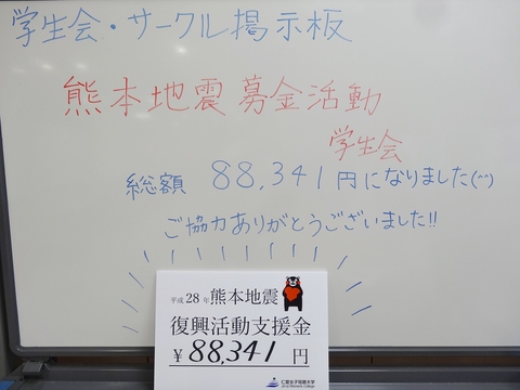 4月より行われた本学学生会の『熊本地震募金活動』報告です。