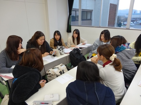 報告会は幼稚園実習、保育所実習、施設実習と3回にわたって行われ、2回生は学んだことをあらためて整理しながら、実習で感じた苦労や喜びを1回生に伝えていました。