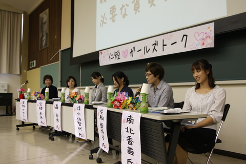 『仁短♥ガールズトーク』と題し、幼児教育学科卒業生5名を招きパネルディスカッション形式でトークショーを実施しました。