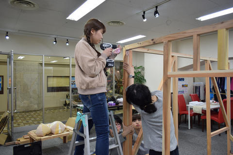 組み立てが出来たら次は、みんなで考えた展示をさらに思考錯誤しながら展示していきます。