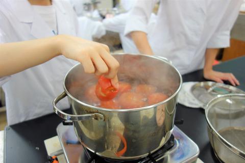 今週の食品加工実習ではトマトを使ってトマトピューレを作りました。