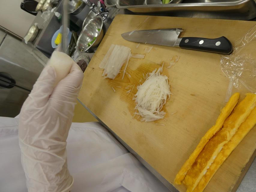 大根のかつらむきに少々手こずっていましたが、何とか完成させていましたよ