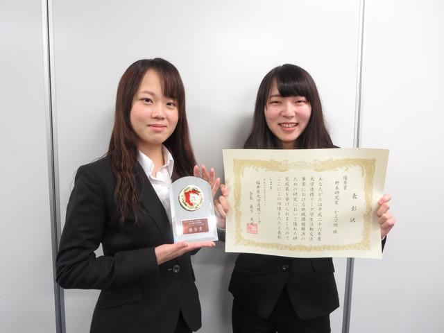 生活情報専攻野本研究室の学生2名が行った研究活動が福井県大学連携リーグの上記事業にて表彰されました。