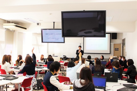 これは地域の課題を私たち自身で発見し解決していこう!という内容なのですが、今年度は仁愛女子短期大学と福井市が包括連携協定を結んだことから、福井市役所の方に来ていただき、福井市の取り組み等についてお話をしていただく機会を得ました。