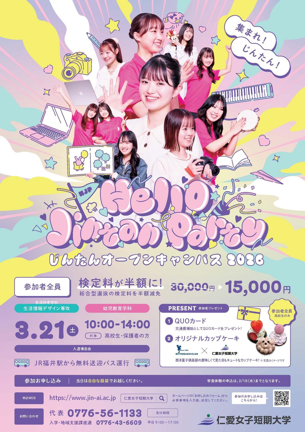 交通費補助としてQUOカードプレゼント!(高校生のみ)JR福井駅から無料バスも運行!