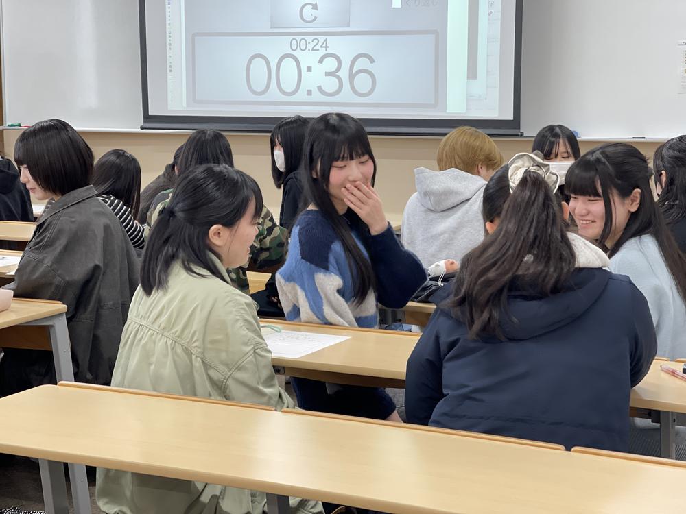 グループワークをすることで、初対面の新入生たちもすっかり打ち解けた様子で、楽しそうに会話する姿が見られました!