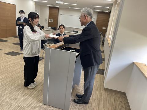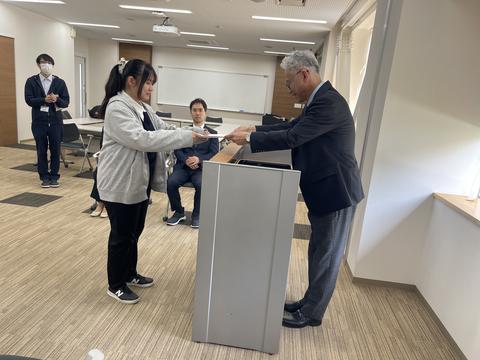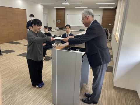 本日、1回生の令和8年度学生会役員承認式を行い、学長から一人ひとり「承認証」を受け取りました。