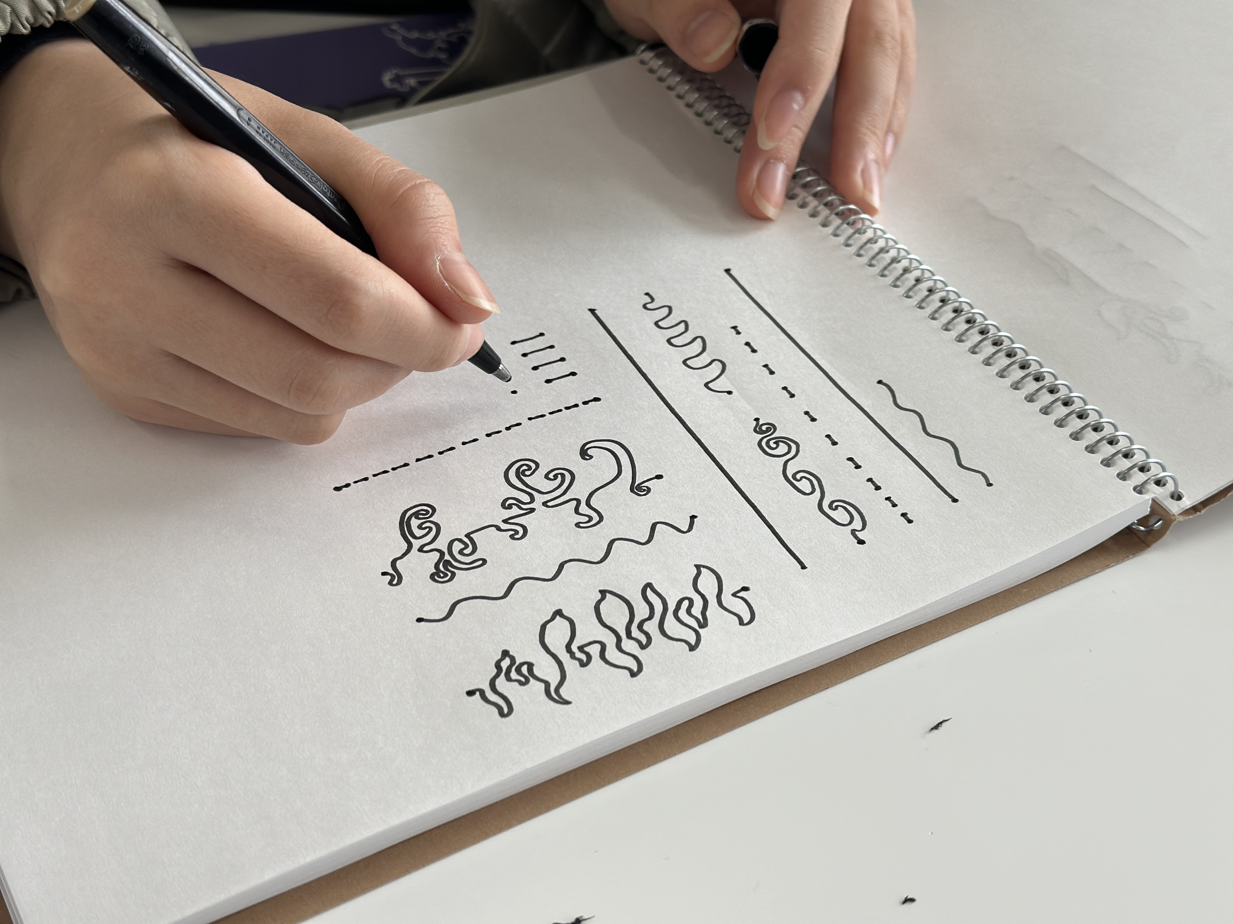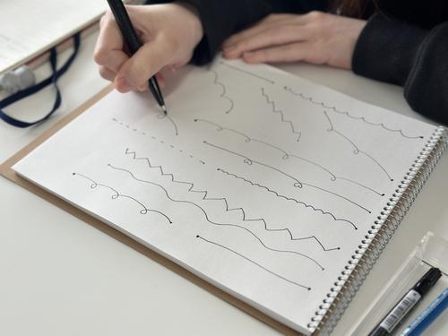 先週から授業が始まっています。 生活情報デザイン専攻のデザイン表現入門では、、、線を描いたり、形を描いたり。