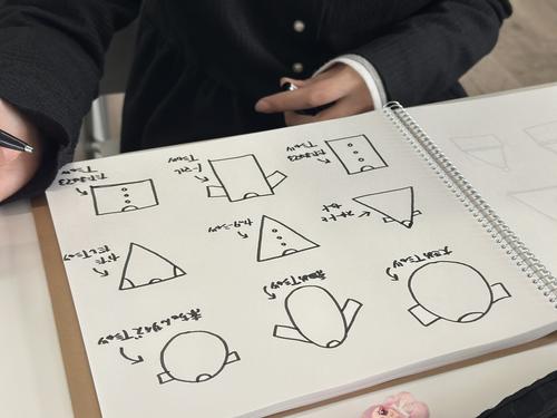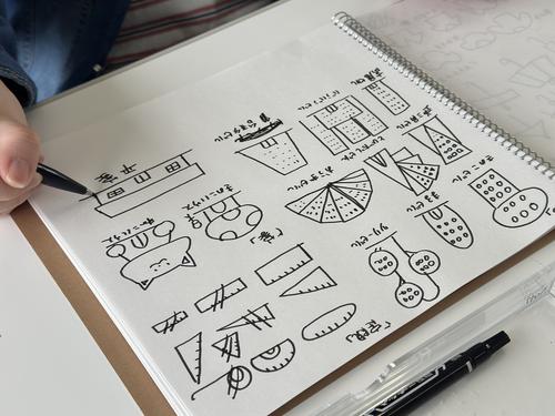 丸とか、三角とか、四角とか。簡単な形で伝わることを学んでいます。