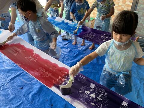 8月に退園するお友達がいたそうで、今回のWSには参加出来ませんでした。でも退園記念に保育士さんが染めたTシャツをお渡ししました。Tシャツの背面には「つばめ」を配置しました。ツバメ組だからツバメの絵を描いてもらったのですが、燕ってまた戻ってくるのでみんなで過ごした場所にまたみんなで集う日があるといいなぁ〜とふと思いました^0^
