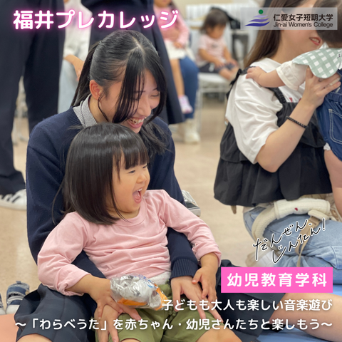そして、教わった「わらべうた」を実践!仁短祭や幼児教育学科ホームカミングデーに来場してくれたお子さんたちにお披露目。